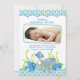 El texto y la foto del bebé de este lindo bebé debajo del anuncio de la foto de los animales del personalizado marino son totalmente personalizable. Para cambiar el texto y la foto, utilice las opciones de personalización. Para realizar cambios más extensos en la invitación, incluyendo cambios en el tipo de letra, el color del tipo de letra, el tamaño del tipo de letra, el tamaño de la foto y/o la ubicación de texto/foto, utilice la opción personalizar. Los colores de este anuncio de nacimiento son azul, verde y blanco. Cuenta con un bonito pez personalizado, un pulpo y un cangrejo emparejado con rayas y puntos de polka.