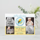 © 2012 Diseños de Socialite. Anuncio caprichoso de nacimiento de un bebé con una abeja dormida en una flor rodeada de un diseño de círculo de encaje azul. Un sutil patrón de peine de miel en la parte delantera y amarillo vibrante en la parte posterior. Una hermosa manera de anunciar el nacimiento de un bebé recién nacido a tu familia y amigos. También hace un recuerdo maravilloso. Simplemente cambia las fotos de la plantilla y el texto con el tuyo propio.