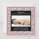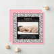 El texto y la foto del bebé en esta moda bebé bebé bebé anuncio de nacimiento de damasco con flores rosa, negro y blanco son totalmente personalizable. Para cambiar el texto y la foto, utilice las opciones de personalización. Para realizar cambios más extensos en la invitación, incluyendo cambios en el tipo de letra, el color del tipo de letra, el tamaño del tipo de letra, el tamaño de la foto y/o la ubicación de texto/foto, utilice la opción personalizar. Los colores de este retro anuncio floral de nacimiento son negro, blanco y rosa bebé. Se vería genial con una foto de bebé en blanco y negro también.