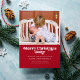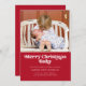 Anunciar la llegada de tu nuevo pequeño mientras se esparce un poco de alegría de los Navidades con este anuncio de cumpleaños. Incluye las palabras "Feliz Navidad Baby" en blanco sobre un fondo rojo. Tiene espacio para una foto en el frente y en la parte posterior.