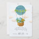 Celebra la llegada de tu pequeño con esta encantadora y caprichosa tarjeta de anuncio de nacimiento. Con una dulce ilustración de acuarela de un elefante bebé volando en un globo aerostático azul entre nubes suaves rosadas, este diseño es la forma perfecta de compartir tu alegría con familiares y amigos.