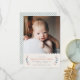 Anuncie la llegada de su hermosa bebé con este simple y dulce anuncio de nacimiento. El nombre de su bebé, así como la información de nacimiento, está enmarcado por una guirnalda de delicadas flores y hojas. La parte superior del diseño presenta un borde ondulado y bonito. También hay espacio para una gran foto de su nueva adición. La parte posterior de la tarjeta presenta un patrón de cuadros azul dibujado a mano... Asegúrese de revisar el sobre con la dirección escrita a mano que coordina.