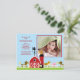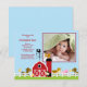 Nuestro anuncio de nacimiento de bebé con animales de granja es una dulce manera de hacer saber a familiares y amigos que ha llegado tu pequeño. La tarjeta de anuncio de foto presenta la escena de granja más linda en un fondo marrón. ¡Añade tu foto e información y ya está listo! ©cocoa studio
