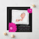 Anuncie el nacimiento de su hija con estilo con este anuncio de la foto de la bebé glamurosa. Con un patrón de puntos polka en blanco y negro y gráficos de margarita rosada caliente. ¡Fácilmente personalizar con tu información! Los diseños son ilustraciones/gráficos impresos planos - no el brillo real del purpurina de diamantes. LA FOTO DE LA MUESTRA NO ESTÁ INCLUIDA. SUSTITÚYASE CON SU PROPIA FOTO ANTES DE PEDIRLA.