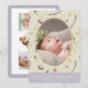 Esta bonita tarjeta de anuncio de nacimiento con foto chica presenta un fondo amarillo claro con lavanda violeta y patrones florales marrones. En el reverso aparece tus fotos y tu mensaje. Personalízalo para tus necesidades. Puedes encontrar productos coincidentes en mi tienda.