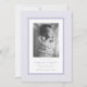 En este anuncio de nacimiento, un marco de gingham púrpura lila dulce rodea una adorable foto de un bebé con nombre y estadísticas. Perfecto para compartir tu nuevo paquete de alegría.