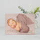 Presenta a tu bebé con esta elegante tarjeta de anuncio de nacimiento con hoja de oro rosa real. Una foto de recién nacido a sangre llena la parte frontal con el nombre del bebé en moderna escritura en minúsculas en hoja de oro rosa y detalles de nacimiento debajo. La parte trasera presenta un diseño blanco limpio con un collage de cuatro fotos y un mensaje de "Bienvenida bebé" de los orgullosos padres. Todo el texto en hoja y texto plano son totalmente personalizables.