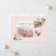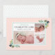 Anuncie la llegada de su bebé recién nacida con esta elegante tarjeta de 3 fotos de la bebé del anuncio de nacimiento. El diseño se acentúa con las flores verde azuladas acuarelas sobre un fondo de color coral suave y claro.