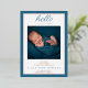 Sencillo, minimalista, moderno y elegante bebé "Hello Little One" en azul océano y blanco con verdadero acento de Relieve metalizado en el Anuncio de Nacimiento delantero. En la parte posterior se muestra una plantilla de foto y texto adicionales sin acentos de Relieve metalizado. Simplemente agregue las fotos y detalles de su precioso bebé para completar este diseño. Diseño compuesto por Holiday Hearts Designs (derechos reservados).
