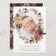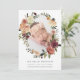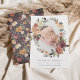 Elegantes anuncios botánicos de nacimiento muestran la foto de tu pequeño y dulce, rodeada por una corona oval de frondosas flores verdes y acuarelas en tonos de burdeos y rubor en otoño. Personalice con el nombre de su bebé y las estadísticas de nacimiento que hay debajo.
