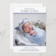 Este súper simple, moderno, minimalista, anuncio de nacimiento de un niño fotográfico es clásico y de moda al mismo tiempo. A todos les encantará conseguir una nueva foto y compartir su alegría y emoción. El tipo de letra es crujiente y está limpio en azul. Es tan fácil hacer el tuyo propio. Seleccione Personalizar esta plantilla, subir su foto, escribir su información y en segundos puede ver sus anuncios de nacimiento únicos y sorprendentes.