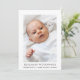 Anuncio moderno de nacimiento fotográfico para chica o niño. Simplemente utilice esta plantilla para añadir la foto de su propio personalizado en la parte delantera y trasera de la tarjeta; de su propio bebé dulce y personalizar con el nombre del bebé y las estadísticas de nacimiento en esta elegante tipografía de escritura a la moda.