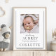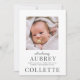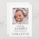 Una tarjeta de foto de anuncio de nacimiento de bebé moderna y elegante de tipo clásico elegante. Sencillamente reemplace las fotos existentes en la parte delantera y trasera con su propio retrato de cara arriba del bebé.