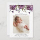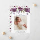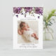Tarjeta de anuncio de natalidad rústica con una foto vertical de tu recién nacido que incluye un ilustracion acuarela de púrpura con vegetación.