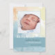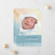 Los remolinos de acuarela crean un suave fondo de azul, amarillo pálido, melón y blanco en este moderno anuncio de nacimiento. (<a href='http://www.freepik.com/free-vector/watercolor-texture-with-soft-tones_1070794.htm'>Diseñado por Freepik</a>). <br/><br/>La tarjeta es fácil de personalizar con su texto, fuente, color de fuente, opciones de forma de papel y elección de seis tipos de papel.<br/><br/>¿No es exactamente lo que estás buscando? Todos nuestros productos pueden ser diseñados a medida para satisfacer sus necesidades sin cargo adicional.<br/><br/>Simplemente contáctenos en askcottonlamb@gmail.com.<br/><br/>Productos coordinados disponibles: ¡Solo pregúntanos!