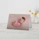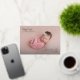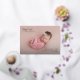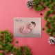 Agradable, moderno y simple anuncio de un nacimiento fotográfico con una foto horizontal completa de la sangre. Al revés hay otra foto en un marco con información adicional que puede reemplazar con su mensaje personalizado.