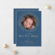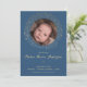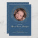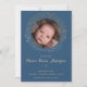 Este moderno y hermoso anuncio de nacimiento de fotos muestra un ilustracion dorado floral de corona con la palabra "bendecido" rodeando una imagen. La foto y el texto (palabras y color) se pueden personalizar para anunciar la llegada de su recién nacido. El color de fondo de la parte posterior (que se muestra en azul marino) también puede cambiarse a su gusto.