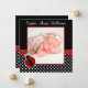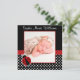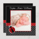 Celebra la llegada de tu niñita con este lindo anuncio de nacimiento de fotos de mariquita. Presentando una mariquita en el fondo de un punto de polka. Mostrado en rojo, negro y blanco. ¡Fácilmente personalizable! LA FOTO DE LA MUESTRA NO ESTÁ INCLUIDA. SUSTITÚYASE CON SU PROPIA FOTO ANTES DE PEDIRLA.