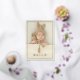 Tarjeta de anuncio de natalidad moderna con un diseño simple con la palabra "HOLA" y un borde en Relieve metalizado de oro real sobre una foto de tu recién nacido. La parte de atrás tiene un collage de fotos con tres fotos y tu mensaje personalizado debajo en blanco y negro. Este elegante anuncio de nacimiento es genial tanto si estás anunciando a un niño recién nacido como a una niña.