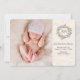 Comparte tu alegría con este encantador anuncio de nacimiento de fotos con una corona floral dibujada a mano en tonos tierra. Colocar las iniciales del bebé en la corona y personalizar.<a href='http://www.freepik.com/free-photo/the-small-baby-lies-on-the-basket_1240629.htm'>Diseñado por Freepik</a>).<a href="http://www.freepik.com/free-vector/vintage-background-with-hand-drawn-jasmine-wreath_1304218.htm">Diseñado por Freepik</a>). <br/>() La tarjeta es fácil de personalizar con su texto, fuente y color de fuente.<br/>() ¿No es exactamente lo que buscas? Todos nuestros productos pueden ser personalizados diseñados para satisfacer sus necesidades sin cargo adicional.<br/>() Simplemente contáctenos en askcottonlamb@gmail.com.<br/>() Productos de coordinación disponibles: ¡Sólo pregúntennos!