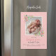 Un personalizado asequible imprimió imanes fotográficos con anuncios de nacimiento de una niña. Este diseño de caracol dulce tiene un borde floral pastel con flores rosadas y violetas y vegetación en un fondo rosa. Personalice el diseño con el nombre del bebé, estadísticas de cumpleaños y nacimiento y fotos de recién nacidos. Haga clic en Personalizar para editar los tipos de letra y los colores del texto y añadir más fotos para crear uno único de los anuncios magnéticos de nacimiento más bonitos.