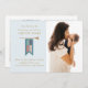 Trompeta heralda con bandera, letras caligráficas para anuncio de nacimiento con temática medieval. Añade más texto o fotos a la parte posterior si lo desea. También disponible en Relieve metalizado.