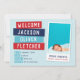 Un personalizado asequible imprimió tarjetas de foto para el anuncio de nacimiento. Este moderno y divertido diseño presenta colores llamativos en un estilo de libro de recortes hecho a mano con un bonito marco fotográfico instantáneo. Personalízalo con el nombre del bebé y las estadísticas de nacimiento y tu foto del recién nacido. El lado inverso tiene un patrón de rayas que se puede personalizar cambiando el fondo a cualquier color. Use la parte posterior para agregar fotos y texto adicionales si fuera necesario. Haga clic en Personalizar para agregar más fotos y personalizares de texto y colores para crear un anuncio único de nacimiento para su hijo de recién nacido.