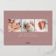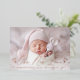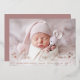Elegante anuncio de nacimiento de Relieve metalizado con "Nuestro Nuevo Amor" mostrado en un guión de Relieve metalizado de oro subió sobre el fondo con rosas corazones de Relieve metalizado de oro a cada lado. Personalice el anuncio del Relieve metalizado rosa con una foto horizontal del recién nacido, el nombre del bebé y las estadísticas de nacimiento. La invitación se invierte para mostrar 3 fotos y texto adicionales con un fondo mauve oscuro sólido. ¡El anuncio de los 4 partos fotográficos es perfecto para ser utilizado como anuncio de nacimiento de un El día de San Valentín!