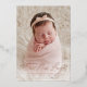 Elegante anuncio de nacimiento de Relieve metalizado con "Nuestro Nuevo Amor" mostrado en un guión de Relieve metalizado de oro subió sobre el fondo con rosas corazones de Relieve metalizado de oro a cada lado. Personalice el anuncio del Relieve metalizado rosa con una foto vertical del recién nacido, el nombre del bebé, estadísticas de nacimiento y bienvenido por texto. La invitación se invierte para mostrar una foto adicional con un sólido fondo malva oscuro. ¡El anuncio de dos fotos es perfecto para ser utilizado como anuncio de nacimiento de un El día de San Valentín!