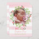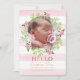 Anuncio de nacimiento floral con fondo rayado rosa y blanco y ventana de fotos con flores rosas y follaje verde. Un dulce "hola" para tu bebé.<a href='http://www.freepik.com/free-vector/pink-floral-card-for-baby-shower_1076425.htm'>Diseñado por Freepik</a>). <br/>() La tarjeta es fácil de personalizar con su texto, tipo de letra, color de letra, opciones de forma de papel y elección de seis tipos de papel.<br/>() ¿No es exactamente lo que buscas? Todos nuestros productos pueden ser personalizados diseñados para satisfacer sus necesidades sin cargo adicional.<br/>() Simplemente contacte con nosotros en askcottonlamb@gmail.com<br/>() Productos de coordinación disponibles: ¡Simplemente pídanos!