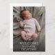 Una moderna tarjeta de fotos de bebé lindo para enviarla a tus amigos y familia para dar la bienvenida a tu recién nacido. Invitación de tarjetas de bienvenida con estadísticas de nacimiento. Reemplace esta foto con la foto de su bebé.