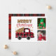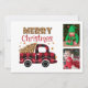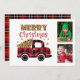 Saluda a familiares y amigos durante la temporada de fiestas cuando envíes esta adorable Tarjeta de Navidad con anuncio de nacimiento de gemelos con Camioneta Cuadros Rojos. Una pequeña y linda camioneta de cuadros rojos al estilo vintage tiene un árbol de Navidad con estampado de animal leopardo de moda en la parte trasera de la camioneta. El divertido texto estilizado dice "Feliz Navidad" en rojo y con gráficos de estampado de leopardo. Agrega dos fotos de tus hijos y pon una nota en el reverso de este Anuncio de Navidad para enviarlo fácilmente.