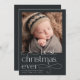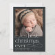 Comparte las noticias de tu bebé de temporada navideña con estas elegantes y festivas tarjetas de anuncio de natalidad que incluyen una foto cuadrada con "mejores Navidades de la historia" con letras blancas. Personalice con el nombre y las estadísticas de nacimiento de su pequeña, y añada una foto adicional al fondo.