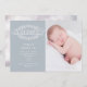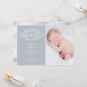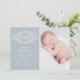 Guión rústico decorativo "bienvenido" con flores y un ilustracion de esténcil de mariposa junto con el nombre y la fecha en elegante letra serif. Muy fácil de personalizar con su información y foto para una invitación rústica y elegante, y usted puede cambiar el color del fondo más allá de las opciones existentes de color polvoriento y azul bebé.