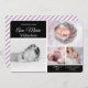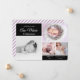 Casual y elegante, este fondo violeta y lavanda y la tipografía elegante preparan el escenario para un bonito anuncio de nacimiento para su chica de recién nacido. Con espacio para un collage de fotos de su hijo, esta tarjeta es una manera encantadora de presentar al bebé a su familia y amigos. Patrón de rayas violetas en la parte posterior.