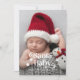 Extraordinaria tarjeta de anuncio de nacimiento de Navidades con tipografía que dice "bebé santa" con estrellas. ¡Esta es una tarjeta de anuncio de nacimiento para las fiestas! ¡Añade tus fotos, estadísticas de nacimiento y un mensaje! La foto vertical funciona mejor en el frente.