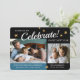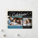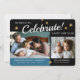 Esta foto invitación de bebé presenta un diseño perfecto para un bebé nacido cerca del Año Nuevo. El diseño ofrece un texto que dice: ¡MUCHO POR Celebrar! y dos marcos de fotos para fotos de bebés y familia. El fondo aparece en negro y azul oscuro y se acentúa con estrellas de dibujos dorados a mano.