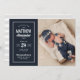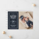 Un personalizado asequible imprimió tarjetas de foto para el anuncio de nacimiento. Este moderno diseño presenta una tipografía moderna personalizada con el nombre del bebé y las estadísticas de nacimiento. En el reverso se muestra una huella de franja de color gris y blanco de moda o se utiliza el espacio para añadir más fotos y texto si es necesario. Utilice las herramientas de diseño para elegir cualquier color de fondo, fuentes de texto personalizar y colores para crear uno único de un anuncio de nacimiento de bebé para su recién nacido.