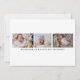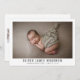 Un moderno anuncio de nacimiento de un collage de fotos de bebé lindo para enviárselas a tus amigos y familia. Adorable foto de bebé en la parte delantera y un collage de fotos de bebé de 3 fotos en la espalda con sus nombres. Debe reemplazar esta foto por una foto de su propio recién nacido con una foto de orientación alandscape que funcione mejor en el espacio.