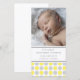 Anuncio de nacimiento de un niño recién nacido tarjetas de foto personalizado en adorable y elegante patrón de puntos brillantes de polka amarillo canario, gris y blanco, personalizable completo con la foto de su bebé y detalles de su nacimiento, una gran manera de compartir la feliz noticia del nacimiento de su hijo con amigos y familia.