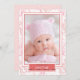 Este Anuncio de Nacimiento de Niña Bebé Linda presenta una impresión de Pulpo Coral y Rosa y acentos Coral y Rosa. La tipografía combina lo caprichoso con lo tradicional, para un diseño divertido adecuado para la presentación de su recién nacida Niña Bebé. El reverso presenta un patrón divertido de burbujas y los nombres de los orgullosos padres. ¡Para versiones personalizadas, póngase en contacto y creemos algo fabuloso!