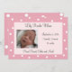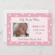 Los puntos de polka blanco bonito y una sombra halagadora de color rosa rodean a la bebé en un cálido resplandor. A todos se les hará cosquillas rosadas para recibir esta invitación de fotos. El sello de coordinación y el sobre también están disponibles.