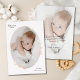 Este elegante anuncio de nacimiento muestra una sola foto orientada a los retratos en forma ovalada, acentuada con delicadas hojas de laurel de Relieve metalizado de oro rosa. Puede personalizarlo con el nombre de su bebé, la fecha de nacimiento y otras estadísticas. En la parte posterior, puede cargar una imagen (que puede ser la misma que la anterior). Se mostrará un mensaje personalizado en la parte superior.