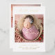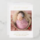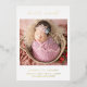 Tarjeta de anuncio de nacimiento moderna con un diseño sencillo que incluye una foto cuadrada de tu bebé o chica recién nacido junto con "mundo de saludo" en un guión elegante y el nombre del bebé y estadísticas de nacimiento. Todo el texto del frente está en Relieve metalizado oro real. Esta tarjeta de invitación de estilo minimalista es la manera perfecta de anunciar su recién nacido a todos sus seres queridos.