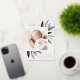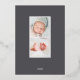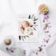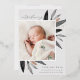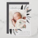 El elegante anuncio de nacimiento presenta una única foto vertical/retrato adornada con delicadas hojas de acuarela monocromáticas y acentos de Relieve metalizado de oro rosa. Personalice el nombre, la fecha de nacimiento, las estadísticas y la firma familiar de su bebé. Añade dos fotos cuadradas adicionales a la parte posterior.