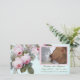 Tarjeta fotográfica de anuncio de nacimiento para bebé recién nacida en azul acuático rosa y suave. A los amantes de los Rosas les encantará el hermoso rosa inglés vintage, el rosa borbón o el rosa de col que aquí representa el célebre artista botánico y pintor francés Pierre Joseph Redoute, que pintó de principios a mediados del siglo XIX en Europa y que fue conocido como el Rembrandt de Rosas. Estas maravillosas flores son amadas por jardineros, románticos, novias y coleccionistas de vintage arte y moda victorianos, así como por cualquiera que ame el diseño floral. Se muestra aquí para un anuncio de nacimiento para una bebé recién nacida, esto puede ser personalizado con tu propia foto de personalizado y detalles de nacimiento.