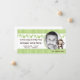 Este adorable mono verde pop de tamaño 4x8 con un anuncio de natalidad neutral es a la vez moderno y moda. Está impreso en papel liso, vibrante y mate de 110 libras de peso. Contiene un 50% de contenido reciclado. Perfecto para sus invitaciones y invitaciones de eventos más formales. Estos vienen con sobres blancos estándar.