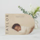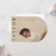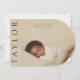 Anuncio de nacimiento de una foto mínima única y moderna en una tarjeta con forma de arco