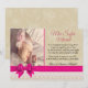 Simplemente hermosa la Invitación perfecta para el bebé que mandar a todos sus amigos y familia anunciando el nacimiento de su hijo. Con una foto en el frente sobre fondo marrón claro con un ligero toque de diseño floral, guarnecido de encaje rosa en la parte inferior y cinta y arco rosado, junto con toda la información del bebé.