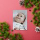 Tarjeta elegante de anuncio de nacimiento durante las vacaciones con fuente de escritura que dice "muy alegre" encima de la foto de su recién nacido. Funciona mejor con una imagen horizontal.